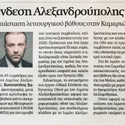Συνέντευξη στην ανταποκρίτρια του Αθηναϊκού-Μακεδονικού Πρακτορείου Ειδήσεων κα. Λαμπρινή Παπαδημητρίου παραχώρησε ο Πρόεδρος του Οργανισμού Λιμένος Αλεξανδρούπολης κ. Κωνσταντίνος Χατζημιχαήλ με αφορμή την έναρξη των εργασιών αποκατάστασης των λειτουργικών βαθών των λιμένων Καμαριώτισσας και Θέρμων Σαμοθράκης:
