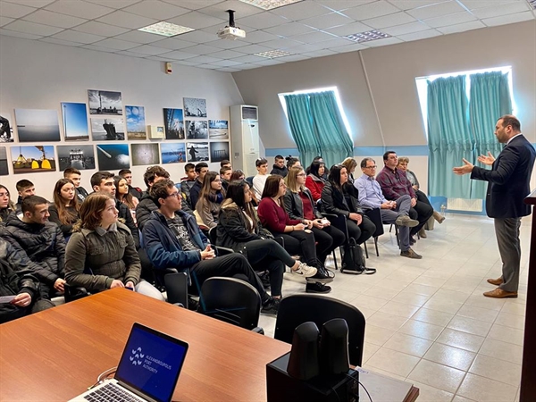 Οι μαθητές με τους συνοδούς καθηγητές τους ενημερώθηκαν για τις προοπτικές ανάπτυξης του Λιμένος Αλεξανδρούπολη, ως κέντρο διαμετακομιστικού εμπορίου, με παράλληλη ανάπτυξη επιχειρηματικών σχεδιών Logistics που αφορά άμεσα το θέμα του σχεδίου τους αλλά και την επαγγελματική προοπτική των μαθητών που θα πραγματοποιήσουν πρακτική άσκηση σε εταιρείες Logistics στην πόλη Rimini της Ιταλίας.