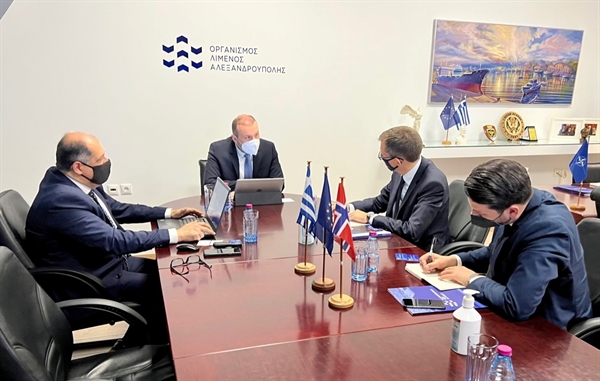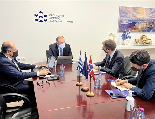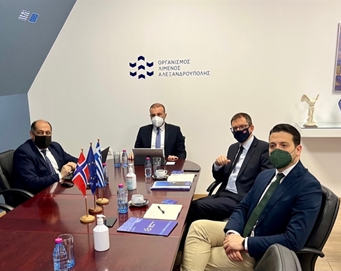 Τον Εξοχότατο Πρέσβη της Νορβηγίας σε Ελλάδα & Κύπρο Frode Overland Andersen υποδέχτηκε ο Πρόεδρος Κωνσταντίνος Χατζημιχαήλ και ο Διευθύνων Σύμβουλος Κωνσταντίνος Χατζηκωνσταντίνου στις εγκαταστάσεις του Οργανισμού Λιμένος Αλεξανδρούπολης. Του έγινε παρουσίαση για τη λειτουργία, την πορεία & τους στόχους της Διοίκησης του Οργανισμού σε ένα ιδιαίτερα δυναμικό διεθνές περιβάλλον και με επίκεντρο το ενεργειακό.