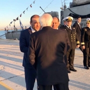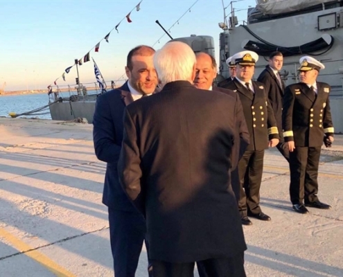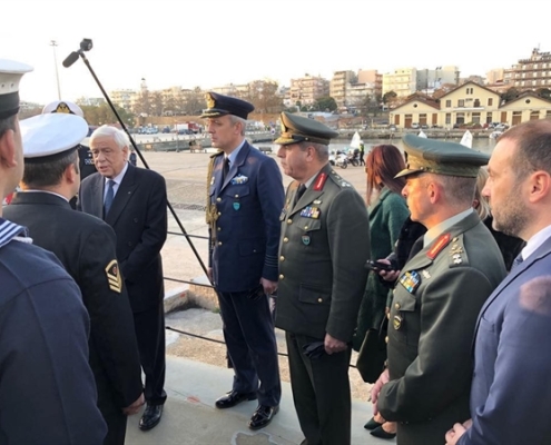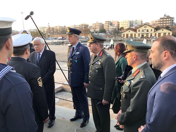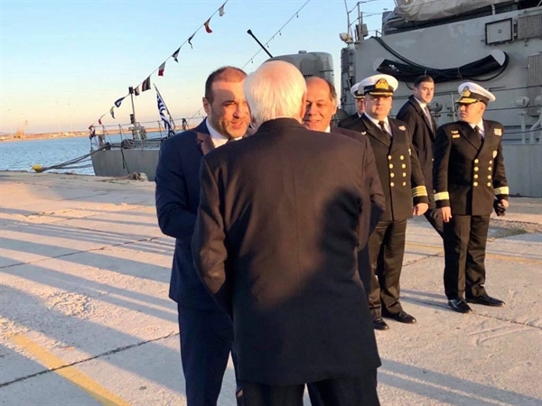 Τον εξοχότατο ΠτΔ υποδέχθηκε στον επιβατικό λιμένα ο Πρόεδρος του Οργανισμού Λιμένος Αλεξανδρούπολης κ. Κωνσταντίνος Χατζημιχαήλ και ο Διευθύνων Σύμβουλος κ. Κωνσταντίνος Χατζηκωνσταντίνου και τον συνόδευσαν στην κανονιοφόρο «ΚΑΣΟΣ» προκειμένου να απευθύνει ευχές στους αξιωματικούς και το πλήρωμα ανήμερα της εορτής του Προστάτη του Πολεμικού Ναυτικού!