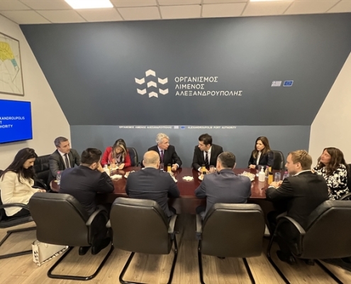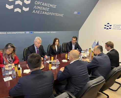 Επίσκεψη στην έδρα του Οργανισμού Λιμένος Αλεξανδρούπολης πραγματοποίησε ο Πρέσβης των ΗΠΑ στην Αθήνα Geoffrey R. Pyatt όπου συναντήθηκε με τις Πρέσβεις των ΗΠΑ στη Σόφια Herro Mustafa και των ΗΠΑ στα Σκόπια Kate Byrnes, παρουσία και της Γενικής Προξένου των ΗΠΑ στη Θεσσαλονίκη Elizabeth Lee. Πραγματοποιήθηκαν συνεχείς συσκέψεις, διμερείς και τριμερείς συνομιλίες με τη συμμετοχή του Πρωθυπουργού της Βόρειας Μακεδονίας Dimitar Kovacevski, του Πρωθυπουργού της Βουλγαρίας Kiril Petkov καθώς και του Έλληνα Υπουργού Περιβάλλοντος και Ενέργειας Κώστα Σκρέκα.