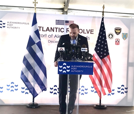Βρισκόμαστε στην περιοχή επιχειρήσεων του νέου εμπορικού τερματικού όπου βρίσκεται σε εξέλιξη η επιχείρηση Atlantic Resolve 2021 που αφορά στην κυκλική εναλλαγή μέσων & υλικού μονάδων αεροπορίας στρατού των Ενόπλων Δυνάμεων των ΗΠΑ ενώ μερικά μέτρα βορειότερα, στην ίδια προβλήτα, βρίσκεται σε εξέλιξη φόρτωση ελληνικού σίτου.