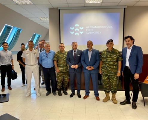 Στελέχη της Αμερικανικής Στρατιωτικής Μονάδας Μεταφορών και της 12ης Μεραρχίας Πεζικού σε συνεργασία με τον Οργανισμό Λιμένος Αλεξανδρούπολης συναντήθηκαν στην έδρα της ΟΛΑ Α.Ε. προκειμένου να συζητηθεί η άρτια προετοιμασία για την ΝΑΤΟική άσκηση της ATLANTIC RESOLVE 2020.